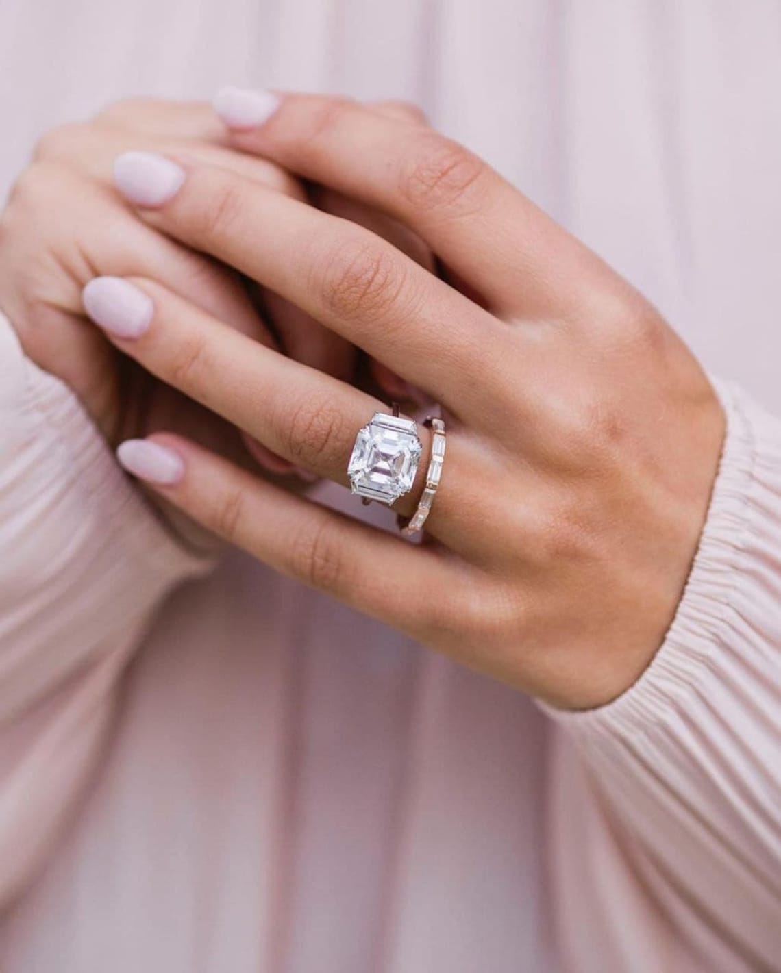 Dominant Celebrities with Asscher Cut Engagement Bands